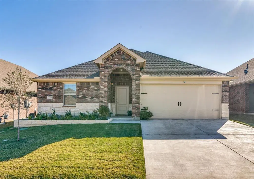 This charming home, built in 2023, offers 1,591 square feet of comfortable living space. Featuring 3 bedrooms and 2 bathrooms, it is perfect for families or those looking for a cozy, modern residence. The interior boasts carpeted flooring throughou The attached garage provides convenient parking, and the exterior is finished with durable brick. Situated in a peaceful neighborhood in Lavon, TX, this home is close to local amenities and offers a quiet, suburban setting.
